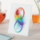 Infinity Symbol with Rainbow Feather Pedestal Sign