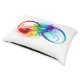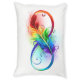 Artistically drawn infinity symbol with beautiful rainbow feather on white background. Tattoo style.
