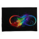 Artistically drawn infinity symbol with beautiful rainbow feather on white background. Tattoo style.