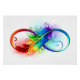 Artistically drawn infinity symbol with beautiful rainbow feather on white background. Tattoo style.