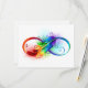 Artistically drawn infinity symbol with beautiful rainbow feather on white background. Tattoo style.