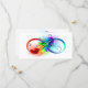 Artistically drawn infinity symbol with beautiful rainbow feather on white background. Tattoo style.