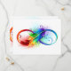 Artistically drawn infinity symbol with beautiful rainbow feather on white background. Tattoo style.