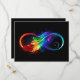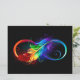 Artistically drawn infinity symbol with beautiful rainbow feather on white background. Tattoo style.
