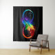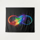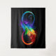 Artistically drawn infinity symbol with beautiful rainbow feather on white background. Tattoo style.