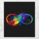 Artistically drawn infinity symbol with beautiful rainbow feather on white background. Tattoo style.