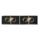 Gold, shiny symbol of infinity, decorated with jewelry peacock feather with turquoise on black background.