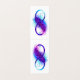 Infinity symbol with a beautiful feather painted in purple and blue bright colors on white background.