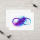 Infinity symbol with a beautiful feather painted in purple and blue bright colors on white background.