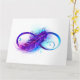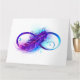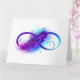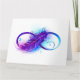 Infinity symbol with a beautiful feather painted in purple and blue bright colors on white background.
