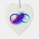 Infinity symbol with a beautiful feather painted in purple and blue bright colors on white background.