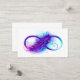 Infinity symbol with a beautiful feather painted in purple and blue bright colors on white background.