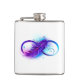 Infinity symbol with a beautiful feather painted in purple and blue bright colors on white background.