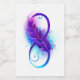 Infinity symbol with a beautiful feather painted in purple and blue bright colors on white background.