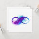 Infinity symbol with a beautiful feather painted in purple and blue bright colors on white background.