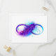 Infinity symbol with a beautiful feather painted in purple and blue bright colors on white background.