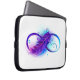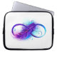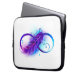 Infinity symbol with a beautiful feather painted in purple and blue bright colors on white background.