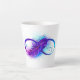 Infinity symbol with a beautiful feather painted in purple and blue bright colors on white background.