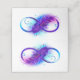 Infinity symbol with a beautiful feather painted in purple and blue bright colors on white background.