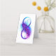 Infinity symbol with a beautiful feather painted in purple and blue bright colors on white background.