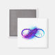 Infinity symbol with a beautiful feather painted in purple and blue bright colors on white background.