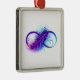 Infinity symbol with a beautiful feather painted in purple and blue bright colors on white background.