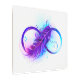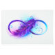 Infinity symbol with a beautiful feather painted in purple and blue bright colors on white background.