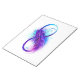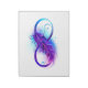 Infinity symbol with a beautiful feather painted in purple and blue bright colors on white background.
