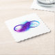 Infinity symbol with a beautiful feather painted in purple and blue bright colors on white background.