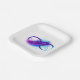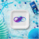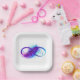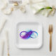 Infinity symbol with a beautiful feather painted in purple and blue bright colors on white background.
