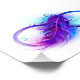 Infinity symbol with a beautiful feather painted in purple and blue bright colors on white background.