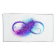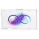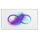 Infinity symbol with a beautiful feather painted in purple and blue bright colors on white background.