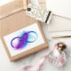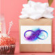 Infinity symbol with a beautiful feather painted in purple and blue bright colors on white background.