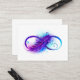Infinity symbol with a beautiful feather painted in purple and blue bright colors on white background.