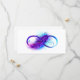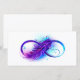 Infinity symbol with a beautiful feather painted in purple and blue bright colors on white background.