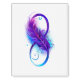 Infinity symbol with a beautiful feather painted in purple and blue bright colors on white background.