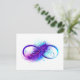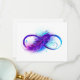 Infinity symbol with a beautiful feather painted in purple and blue bright colors on white background.