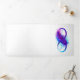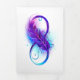 Infinity symbol with a beautiful feather painted in purple and blue bright colors on white background.