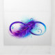 Infinity symbol with a beautiful feather painted in purple and blue bright colors on white background.