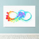 Multicolor infinity symbol with rainbow bright jellyfish decorated with long tentacles on white background. Rainbow jellyfish.