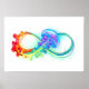 Multicolor infinity symbol with rainbow bright jellyfish decorated with long tentacles on white background. Rainbow jellyfish.