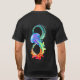 My 11 yo wore adult XL (5’7” 165#). The 8yo is small framed. She wore adult small and tied it in the back. Grandma wore adult large with long sleeve shirt underneath. Tall girl adult medium. Dark haired male adult large. Good quality dark Heather gray, Gildan brand shirt. -it was next up from basic choice and cost about $20 per shirt. Not too thick or thin. Washed and dried well, no major shrinkage. Not see-through. Can wear a bra under it fine. Screen print is just as shown and well done, front and back.