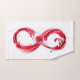 Infinity symbol of continuous stream of red wine pouring into glass wine glass on white background.