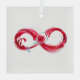 Infinity symbol of continuous stream of red wine pouring into glass wine glass on white background.