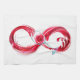 Infinity symbol of continuous stream of red wine pouring into glass wine glass on white background.
