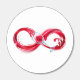 Infinity symbol of continuous stream of red wine pouring into glass wine glass on white background.