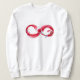 Infinity symbol of continuous stream of red wine pouring into glass wine glass on white background.