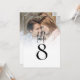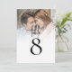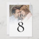 Informal Script Photo Overlay Table Number. Simply replace the sample image with your own and easily personalize the table number. The same design is on the other side and will update simultaneously as you make your changes.