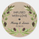 infused with love olive oil bottle labels, they are perfect custom label for your wedding favors. They feature a watercolor olive branch and a customizable label for all your olive oil bottle labeling needs, from bridal shower party favors to any other olive oil favor stickers.