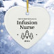 First Christmas as an infusion nurse heart ornament for a new job in nursing in the operating room. Elegant porcelain ceramic holiday ornaments in white with black lettering. Featuring Christmas trees and stars.